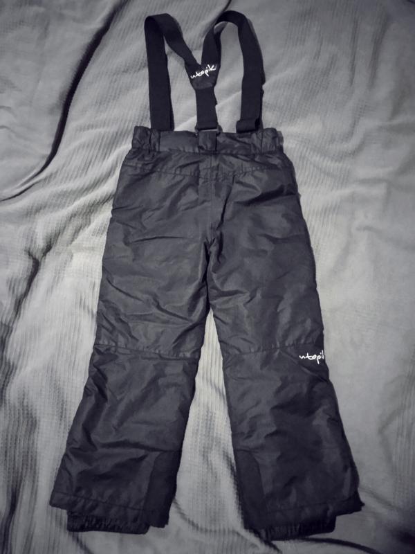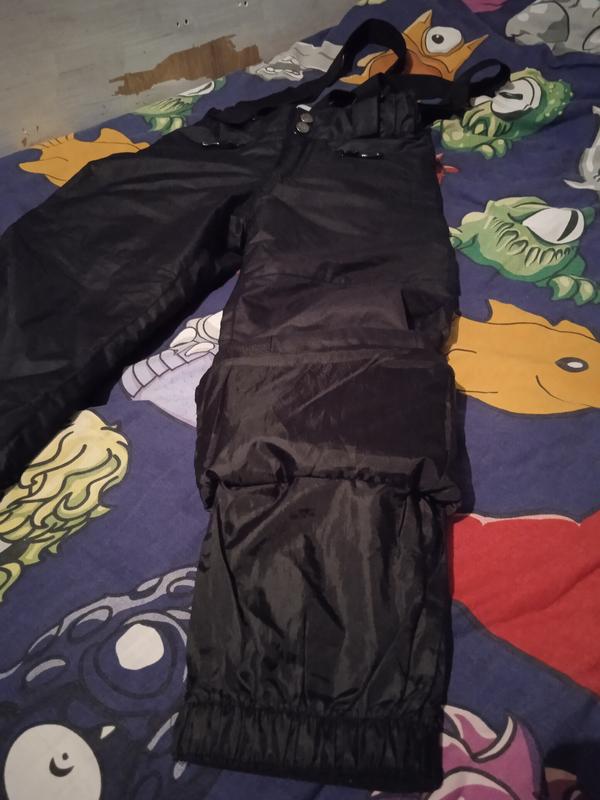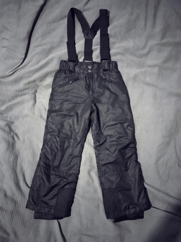 Очень качественные зимние брюки. Как новые. Качественная фурнитура и сама ткань, не промокают. На 6-7 лет. Приятная на ощупь подкладка. Лямки отстегиваются. Есть 2 кармана спереди на замотках. На коленях есть вытачки. Внизу есть дополнительная подкладка на резинке с силиконовыми полосками, благодаря чему снег не будет попадаться в обувь. На поясе по бокам есть изюминка, что очень удобно, так как штанишки не будут давить.