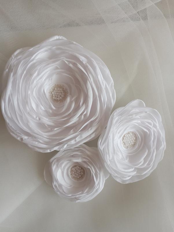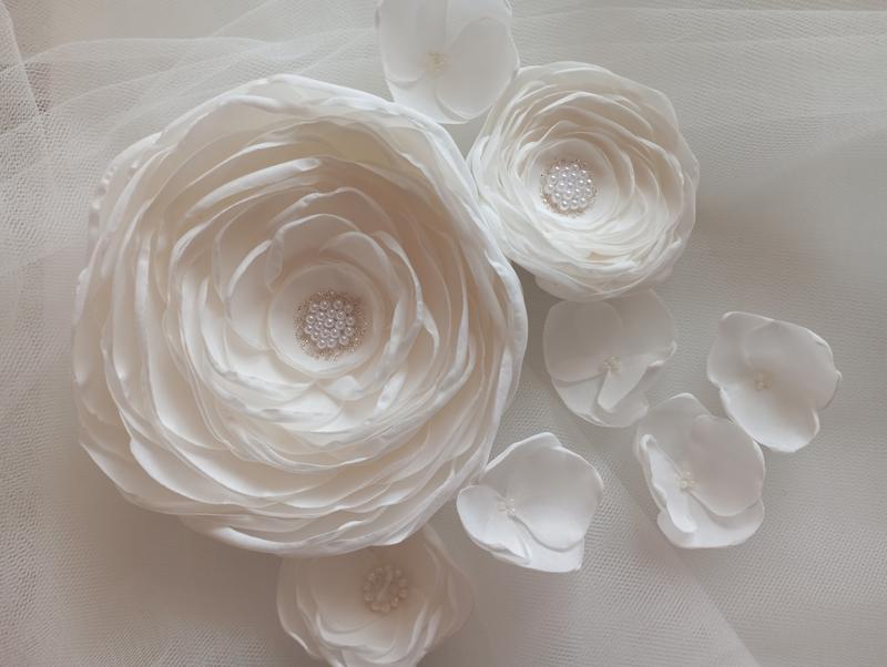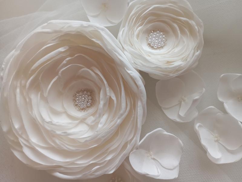Розы из ткани молочного цвета в прическу или декор на платье.