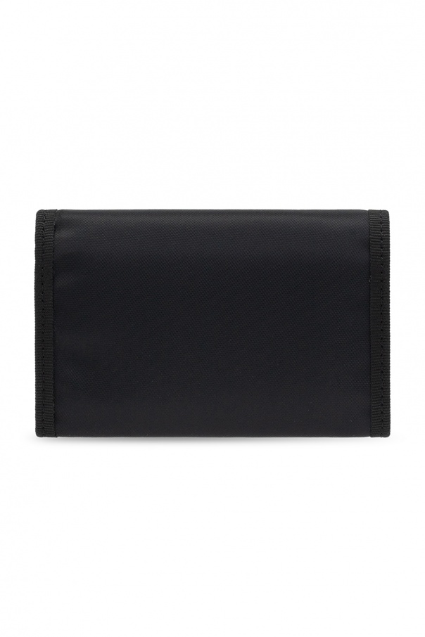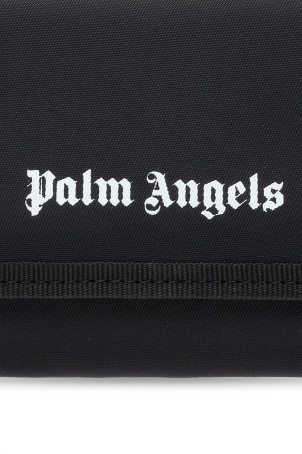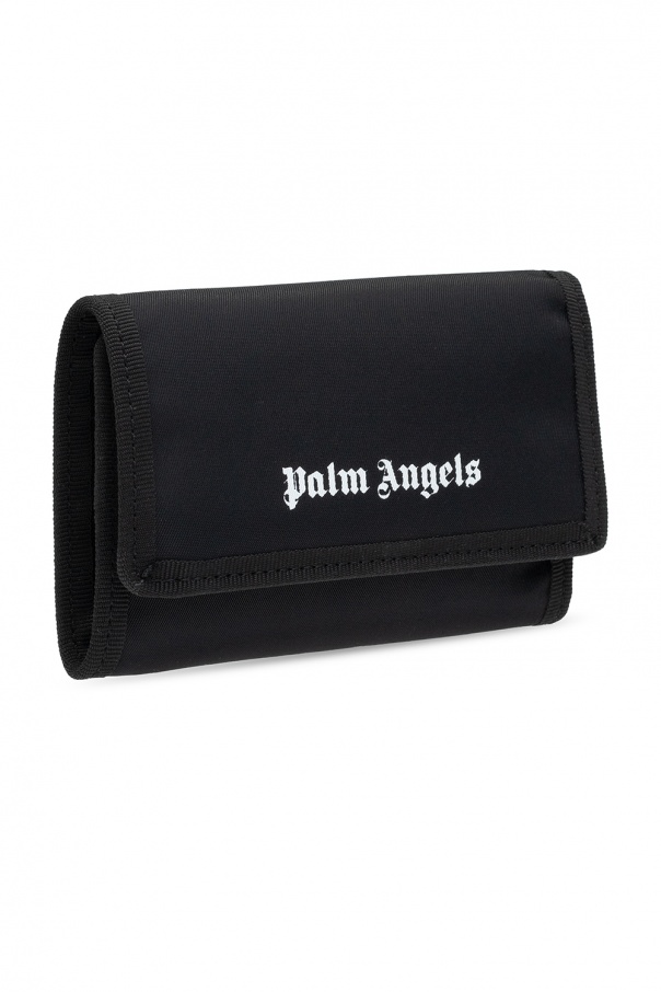 Black wallet from Palm Angels. Embellished with a white logo print, this item secures with a velcro fastener and features a bill compartment, four card slots and one coins pocket inside.