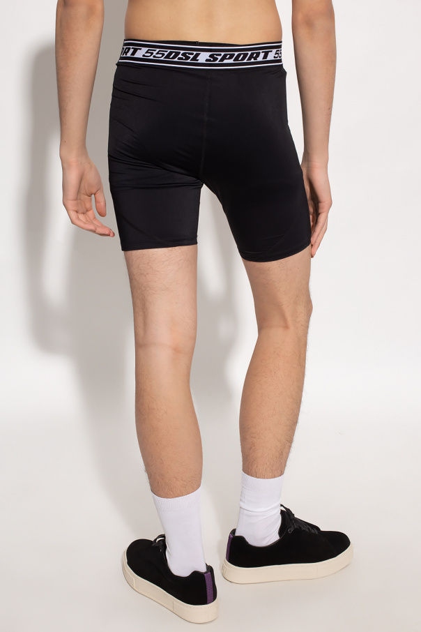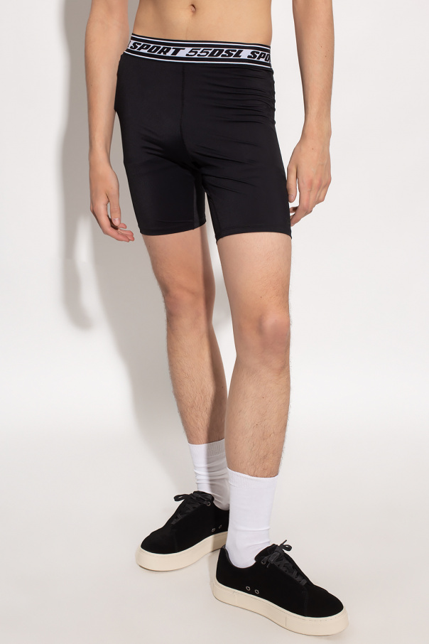 Black \'AMSB-SPRANT-WT18\' leggings from Diesel, the ‘Sport 55DSL’ collection. Cut with a cropped silhouette, they feature an elasticated waistband with white logo embroidery and logo applications on the legs.