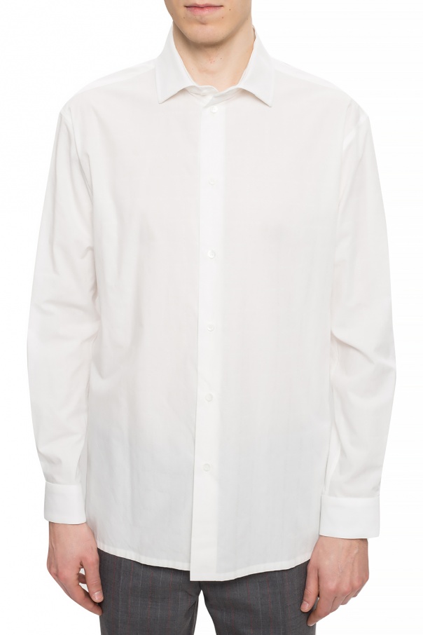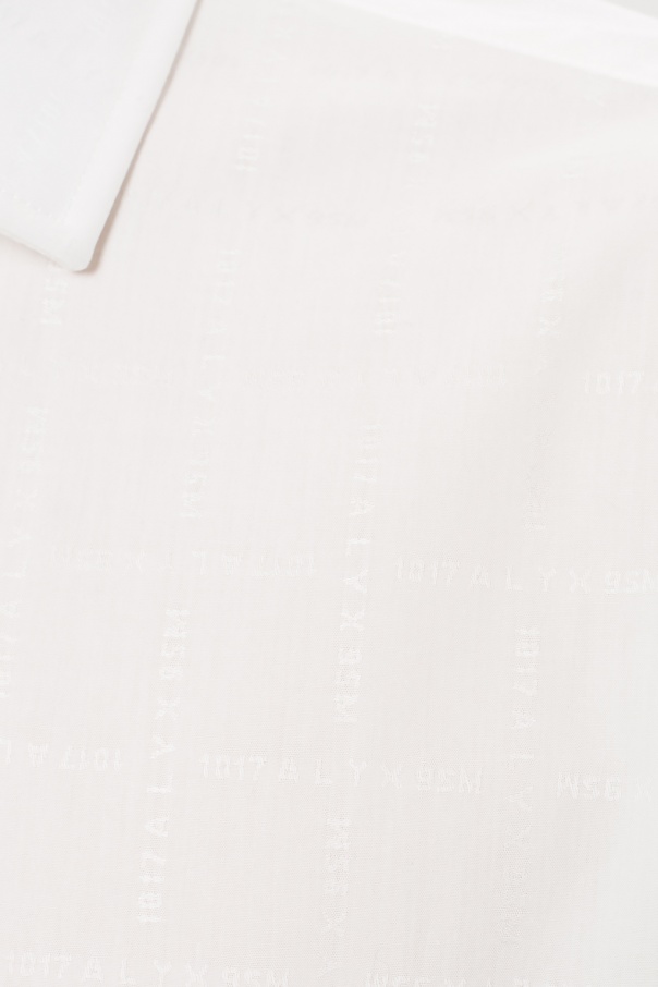 White shirt from 1017 ALYX 9SM. Made of cotton. Fastened via buttons. Embellished with woven pattern with logo. Long sleeves are finished with elasticated cuffs.