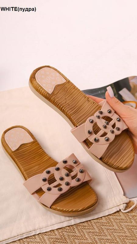 Жіночі шльопанці пудрові + шипи