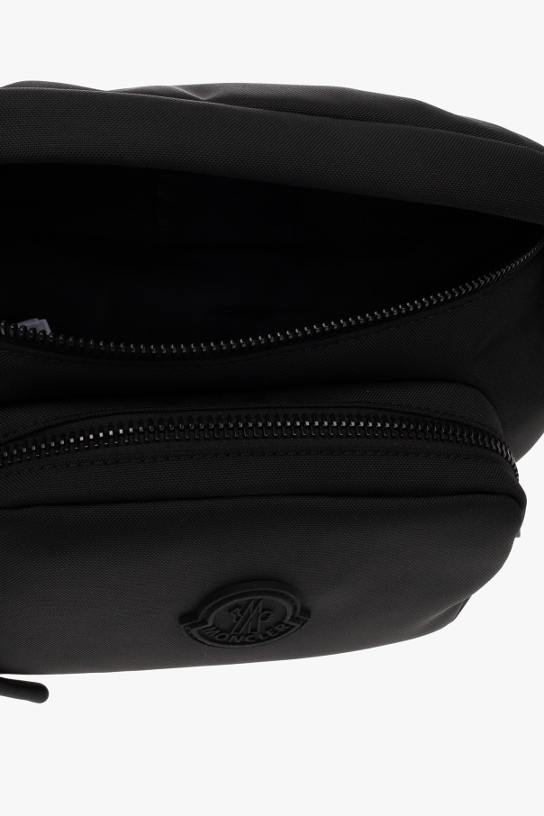 Black ‘Durance’ belt bag from Moncler. Made of Cordura® waterproof fabric, this model features a zip fastening, zipped front pocket, rubber logo patch, zipped back pocket, adjustable belt, one internal compartment and black metal hardware.