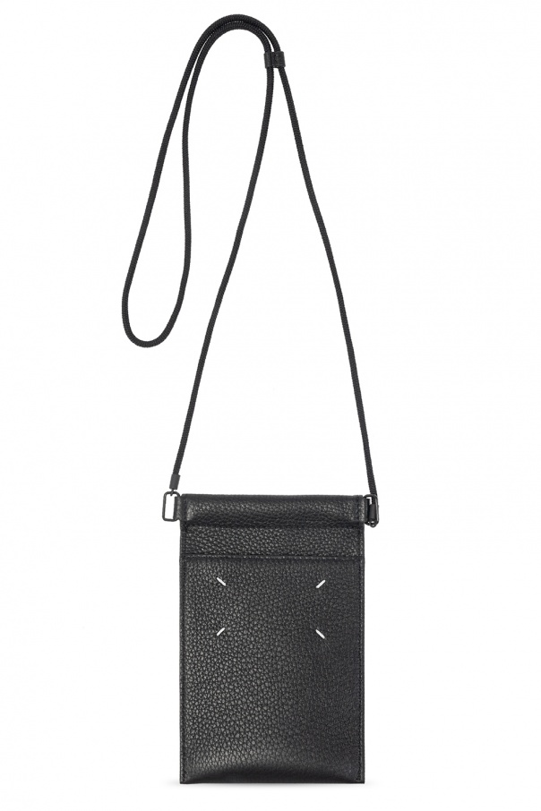 Black phone pouch from Maison Margiela. Crafted from leather, this design features a stitching detail in white, a front slip pocket and one internal compartment.