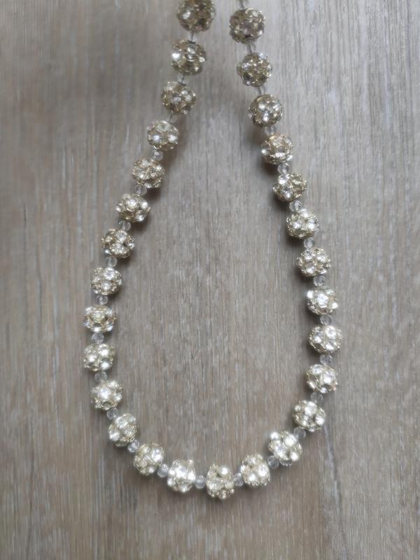 Продам стильный, блестящий чокер в из бусин циркония и металлических бусин со стразами. Очень красиво переливается и "играет" в лучах солнца и под искусственным освещением. Украшение нанизано на ювелирный тросик, застежка - карабин. Размер металлический бусин со стразами - 8 мм, циркония - 4 мм. Длина 41 см, можно увеличить размер с помощью удлинительной цепочки по Вашей просьбе. По всем интересующим вопросам пишите - отвечу.