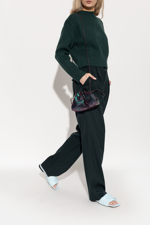 Light blue ‘Lido’ slides from Bottega Veneta. Crafted from lamb leather, this model showcases the brand\'s signature Intrecciato weave, a square toe and a beige leather sole with anti-skidding rubber inserts to ensure stability.