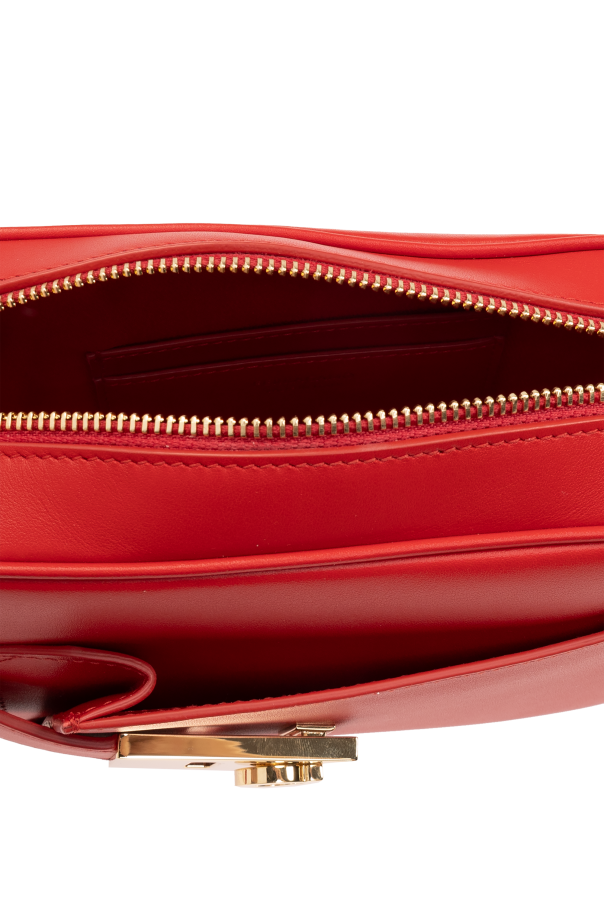 Introducing the \'Archive\' Shoulder Bag by FERRAGAMO - a quintessence of luxurious elegance designed to elevate the wardrobe of the discerning woman. Crafted with meticulous attention to detail, this small, rectangular bag with softly rounded corners boasts an exquisite, smooth texture that speaks volumes of its high-quality calfskin construction. The bag\'s vibrant red hue is complemented by the lustrous gold hardware, including the iconic \'Gancini\' logo closure, adding a touch of sophistication and glamour. Its sleek, adjustable strap offers versatile wearability, allowing for over-the-shoulder or cross-body styling. Inside, the bag reveals a well-organized interior with a main compartment and two card slots, lined with premium material for a touch of luxury. The \'Archive\' Shoulder Bag\'s design balances functionality with aesthetic appeal, featuring a front pocket secured by the \'Gancini\' shaped closure, ensuring your essentials are both stylishly and safely contained. Why Should You Purchase This Product? Exemplary craftsmanship from 100% calfskin leather, offering durability and a refined touch. Elegant and versatile design, with an adjustable strap for multiple styling options. Functional interior with organizational compartments, including two card slots. Signature \'Gancini\' logo closure and gold metal accents, enhancing the bag\'s luxurious appeal.