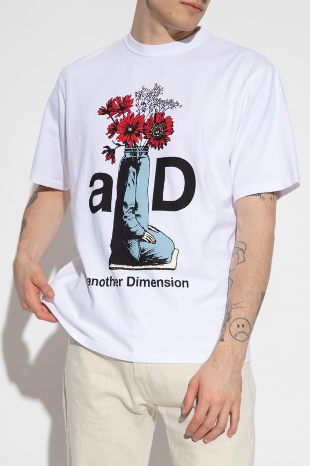 White T-shirt from Undercover. Made of cotton, this short sleeve design features a multicolored print, floral motif and ribbed crew neck.
