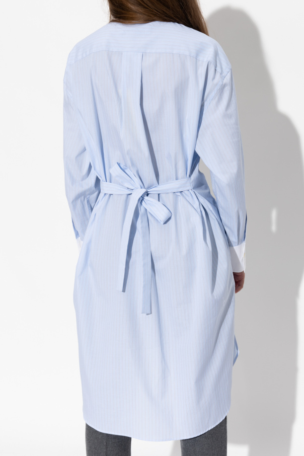 Light blue and white shirt dress from Marni. Crafted from cotton, this design features button fastenings, waist tie, stripe pattern, two slip pockets and long sleeves with buttoned cuffs.