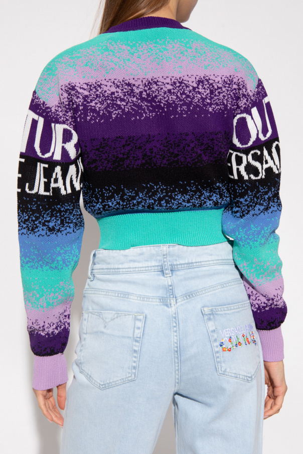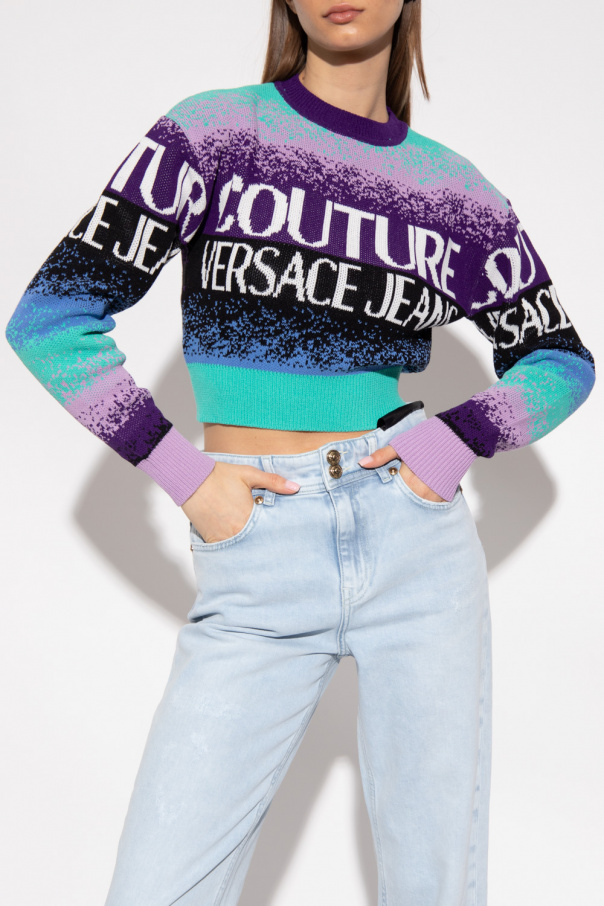 Multicolored patterned sweater from Versace Jeans Couture. This round neck design is enriched by a logo embroidery and ribbed trims at the hem and cuffs.