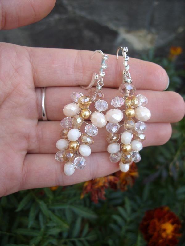 Серьги – популярное украшение, которое никогда не выходит из моды. Меняется форма, дизайн и цвет. Модные серьги этого года – это объемные изделия, с большим количеством камней и стразов, жемчуга. К вашему вниманию прекрасные серебряные серьги, которые изготовлены из криштавлевих бусинок и стразов. Длина сережек - 4,5 см.