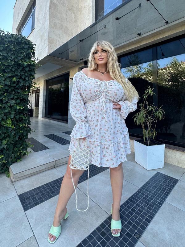 Платье можно сделать дольше или короче- подтягивая веревочки спереди. Сзади- шнуровка - регулирует приталенность. , длина 87 см. Резинка на плечах растягивается при одевании длина может быть 90 см. Если веревочку впереди немного затянуть - длина будет 85 см. Измерение:
