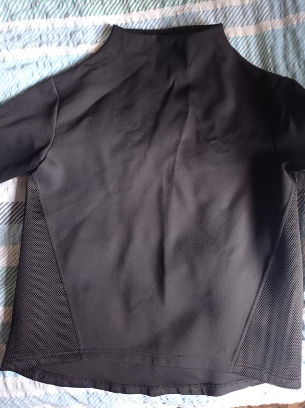 очень качественная вещь, состояние нового. цвет глубокий черный. сеточка не прозрачная, спортивная, как на кроссовках. на плече блестит надпись бренда. ткань плотная, дышащая, спортивная. приобретала себе, нефралась. носился раз 2-3.