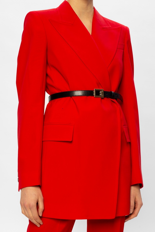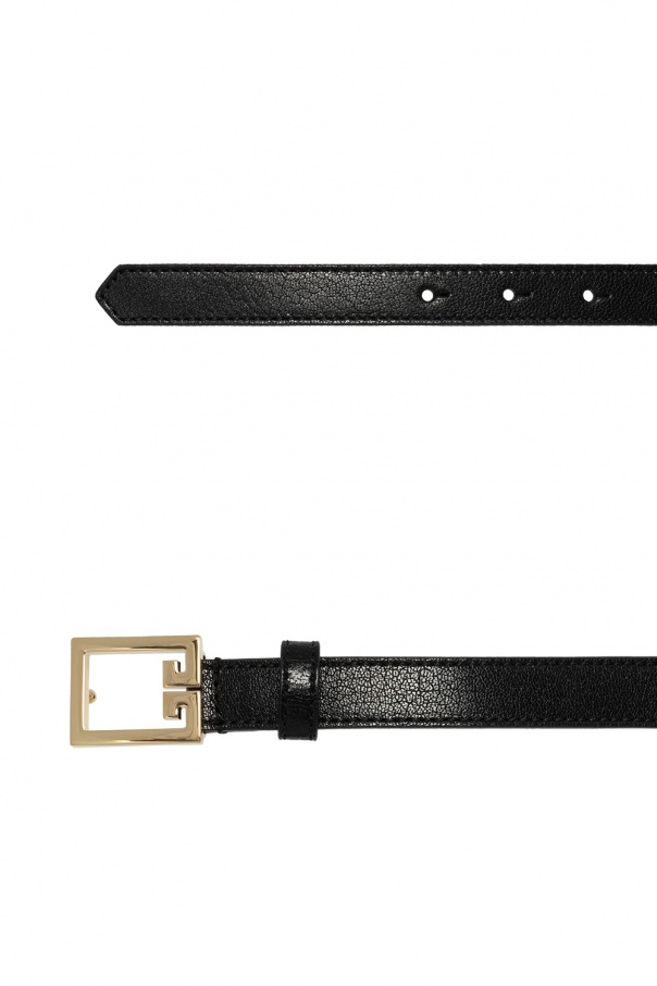 Black belt from Givenchy. Crafted from goat leather, this item features an antiqued gold-tone buckle closure wielding the brand\'s logo.