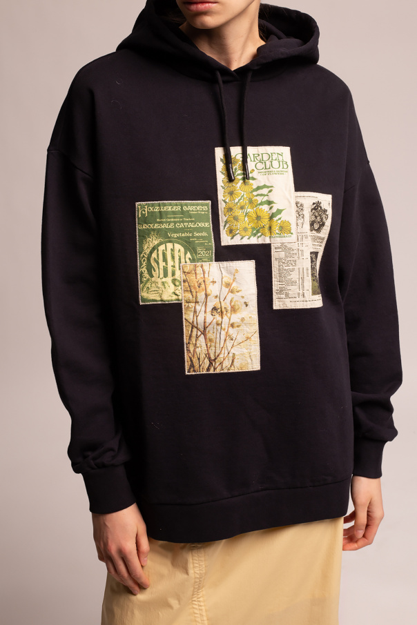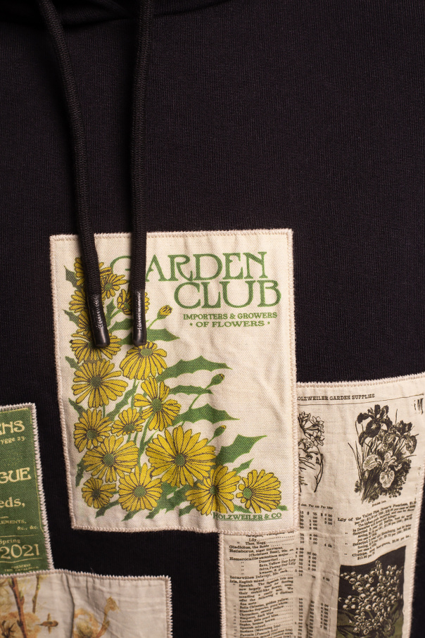 Black sweatshirt with a drawcord-adjustable hood from Holzweiler. Made from organic cotton, this style features embroidered colourful logo appliqués and elasticized trims on the bottom hem and cuffs.