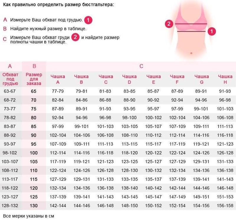 Берем разницу цифр, которая у тебя получилась при замере обхвата под грудью (Шаг №1) и замер по выступающим точкам (Шаг №2) – определяем полноту груди и размер по таблице. Задавайте дополнительные вопросы по товару и я с огромным удовольствием отвечу,дополню фото,по желанию видео.Практически каждый день новые добавления товаров.