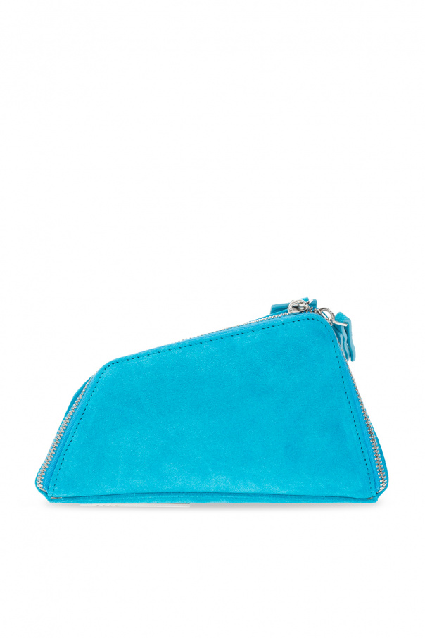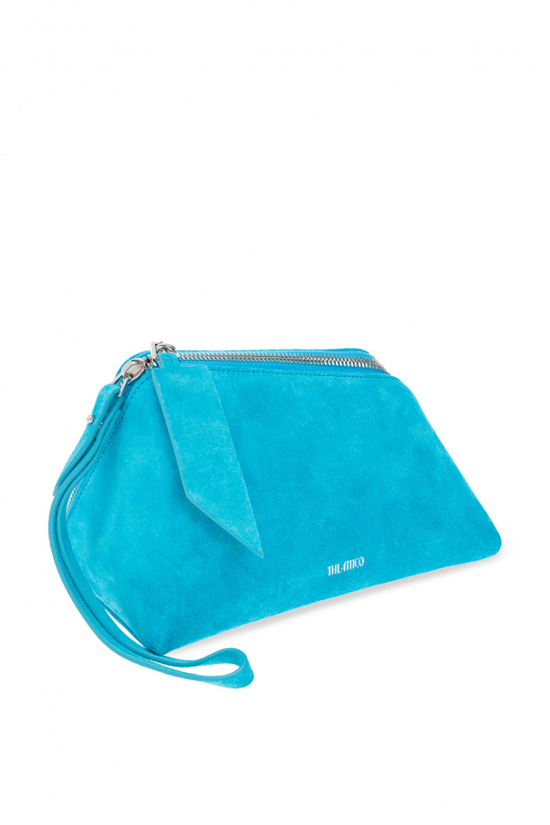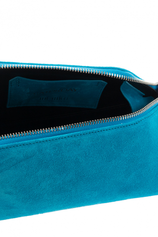 Blue ‘Saturday’ handbag from The Attico. Crafted from suede, this model fastens with a two-way zip and is complete with a silver-tone logo print, detachable wrist strap, silver-tone metal hardware and one internal compartment with one zip pocket.