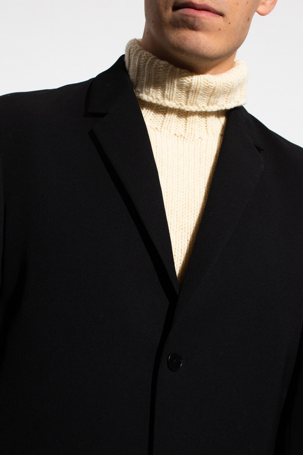Black blazer from Jil Sander. Made of wool, this garment features button fastenings, two flap pockets, notch lapels and a single rear vent.