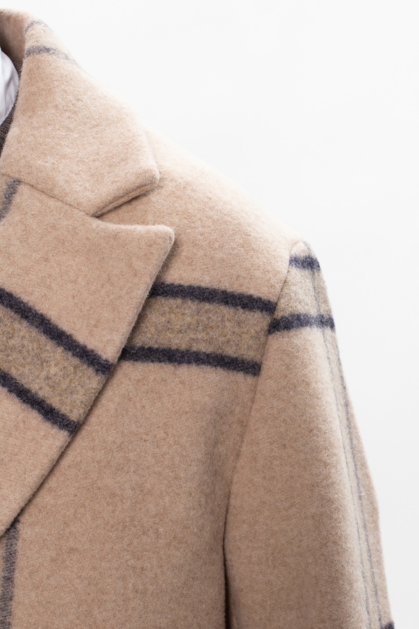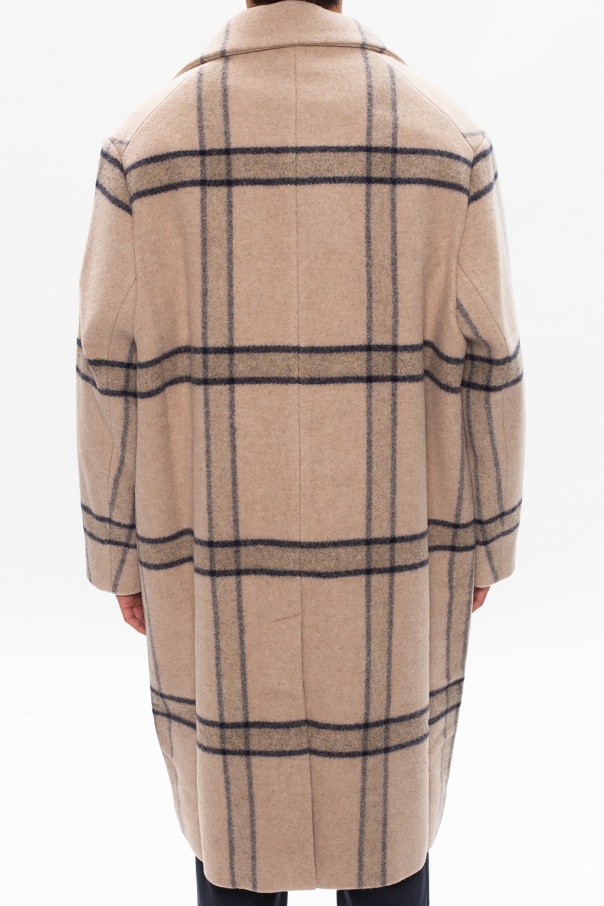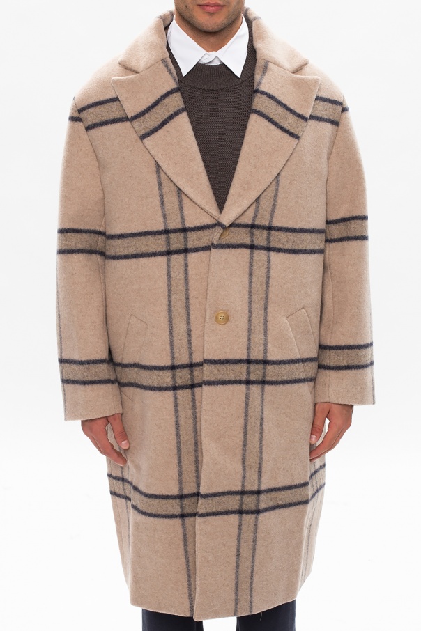 Beige ‘Le Manteau’ coat from Jacquemus. Crafted from wool, this garment features button fastening, check pattern and two slip pockets.
