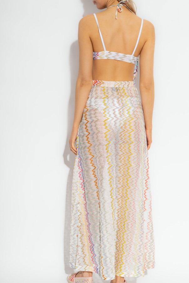Multicolored sheer dress from Missoni. This flared design features a geometric pattern and elasticated waistband.