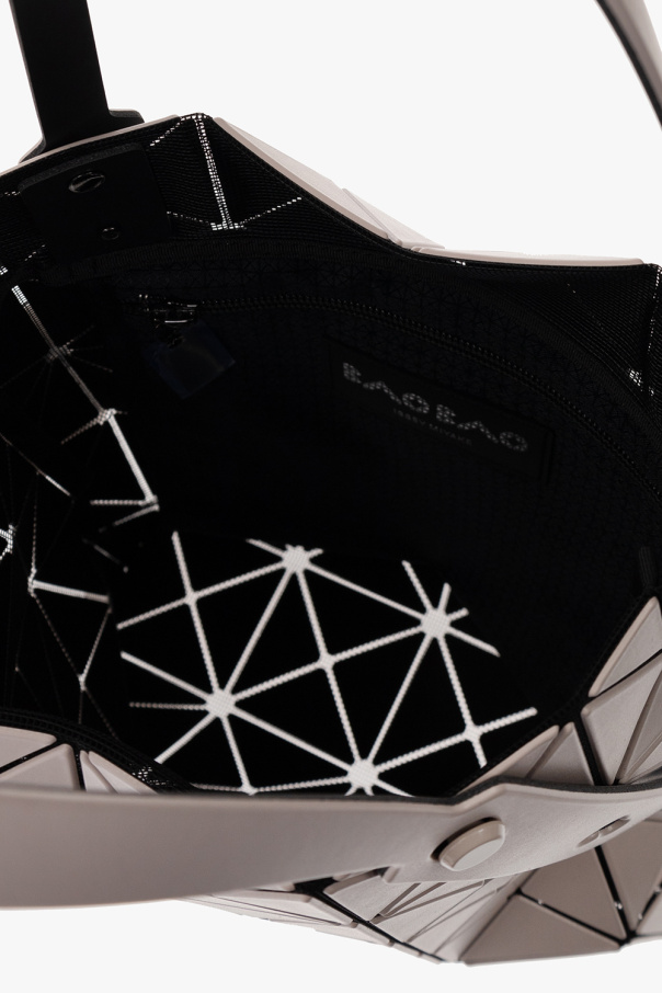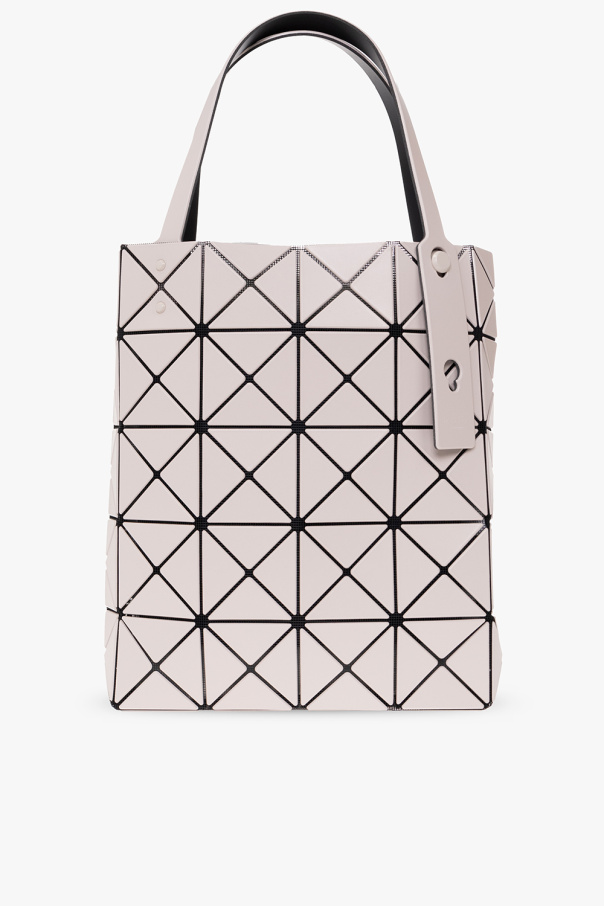Cream and black ‘Lucent Boxy’ shopper bag from Issey Miyake Bao Bao. Made of mesh embellished with a rubberized geometric pattern, this model is complete with two adjustable half-round handles and one internal compartment with one zip pocket.