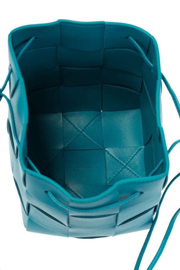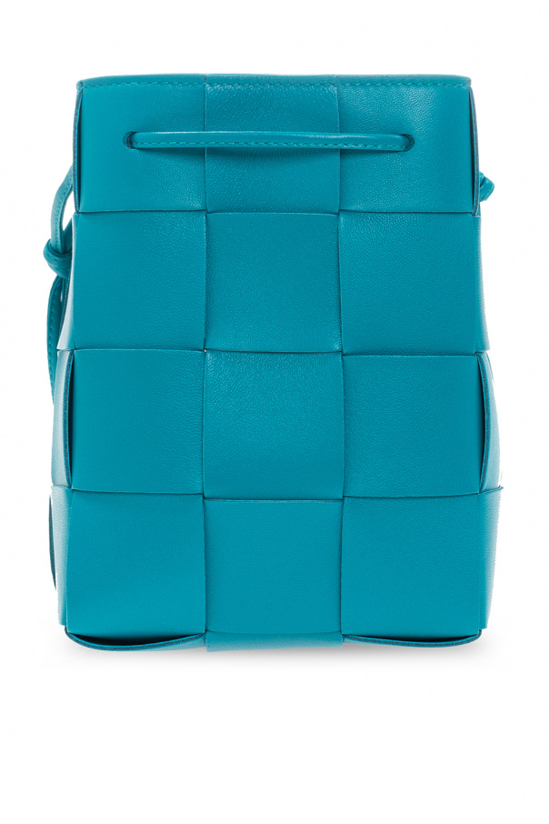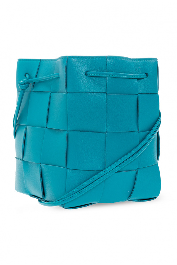 Blue and green ‘Pouch’ shoulder bag from Bottega Veneta. Enriched by the brand\'s iconic Intrecciato weave, this design features a shoulder strap and one internal compartment.