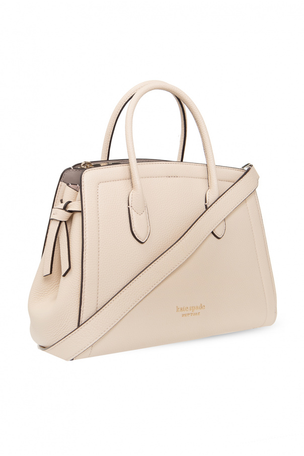 Pink ‘Knott Medium’ shoulder bag from Kate Spade. Crafted from leather, this model features a snap hook closure, metal logo, two half-round handles, detachable and adjustable strap, gold-tone metal hardware and one internal compartment with one zip pocket and one slip pocket.