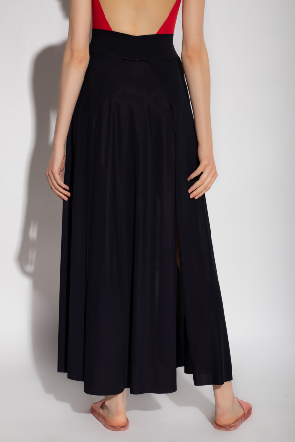 Black ‘Jax’ beach skirt from Pain de Sucre. Cut with a flared silhouette, this style features an elasticated waistband and four vents.