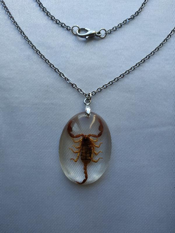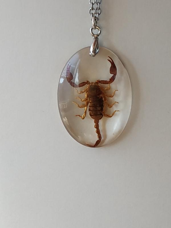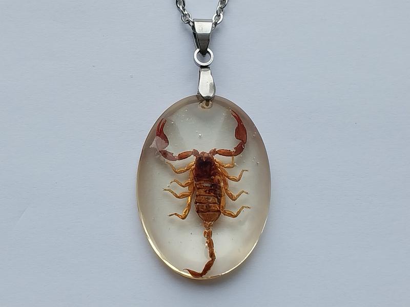 Кулон Скорпион, ручная работа, настоящий скорпион в прозрачной ювелирной смоле. Кулон в стиле минимализм, поэтому подходят как парню, так и девушке. Размер кулона : 32х24 мм.