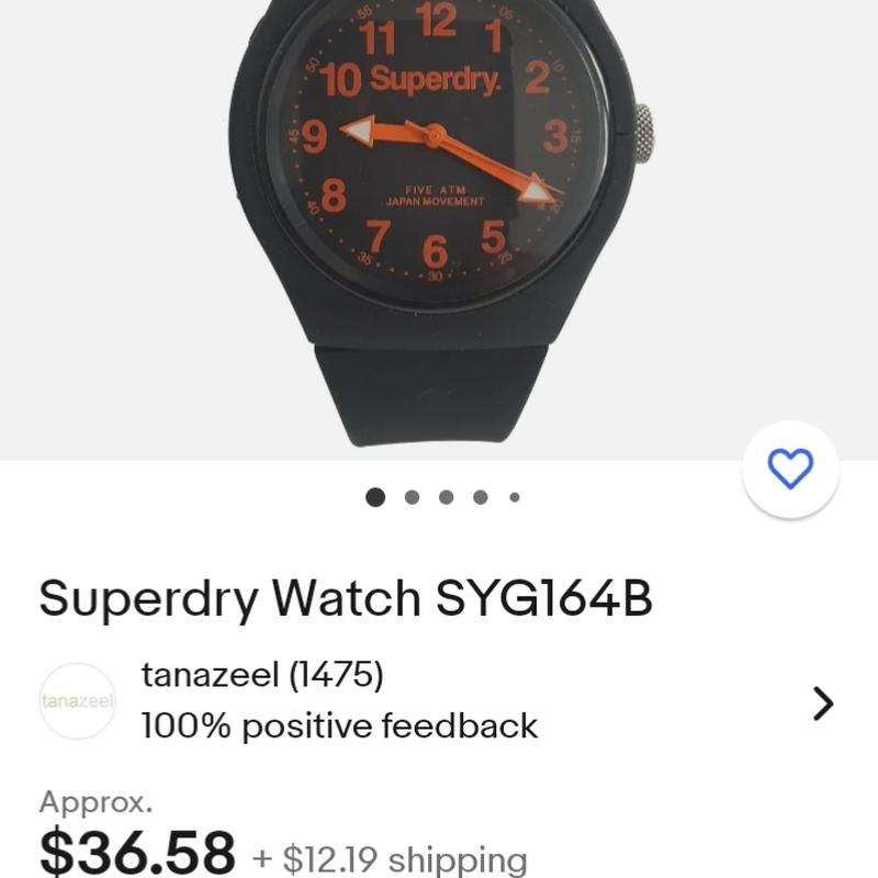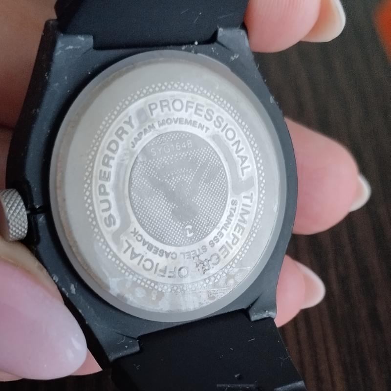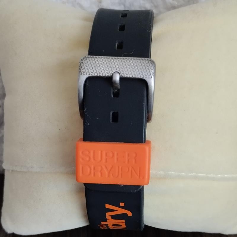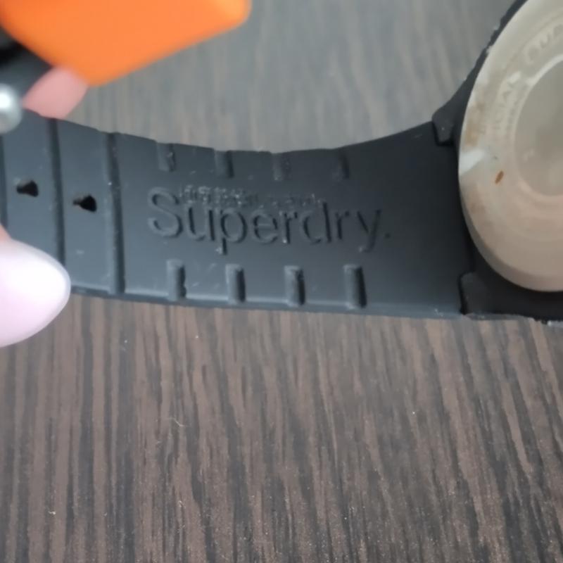 Характеристики модели syg164b: эта модель имеет черный циферблат с оранжевыми арабскими индексами. циферблат показывает оранжевые часовая, минутная и секундная стрелки. акриловая линза защищает циферблат. Циферблат обрамляет черный пластиковый корпус. он измеряет 38 мм в диаметре и 10,6 мм в толщину. Часы снабжены черным силиконовым ремешком с оранжевым логотипом Superdry. застегивается на металлическую пряжку. эта модель водонепроницаема до 50 метров (5 бар).