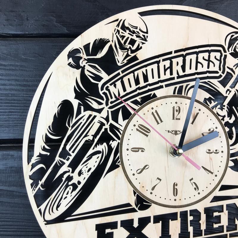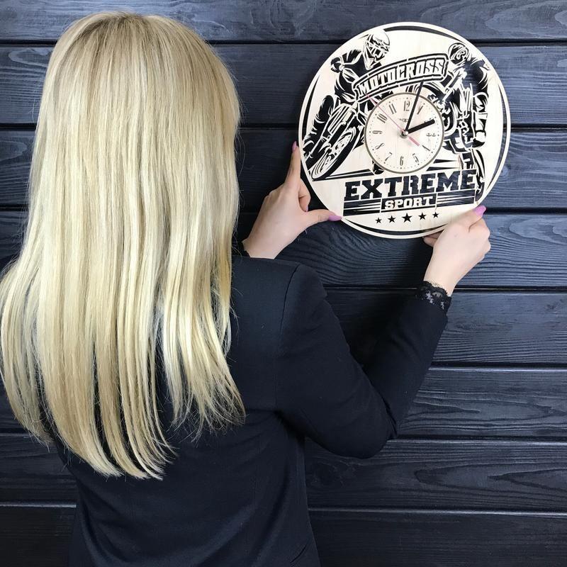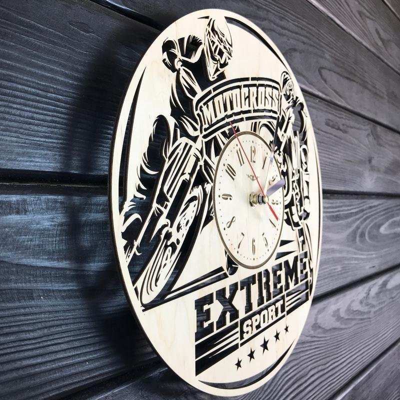Такие эффектные часы ручной работы красиво будут смотреться, как в интерьере квартиры или дома, так и в тематическом заведении. Если у Вас есть любимая модель мотоцикла, мы можем нанести ее название на деревянные настенные часы. Тогда они станут еще более уникальными! Декоративные часы изготовлены из высококачественной березовой фанеры, поэтому длительное время будут сохранять свой безупречный вид!