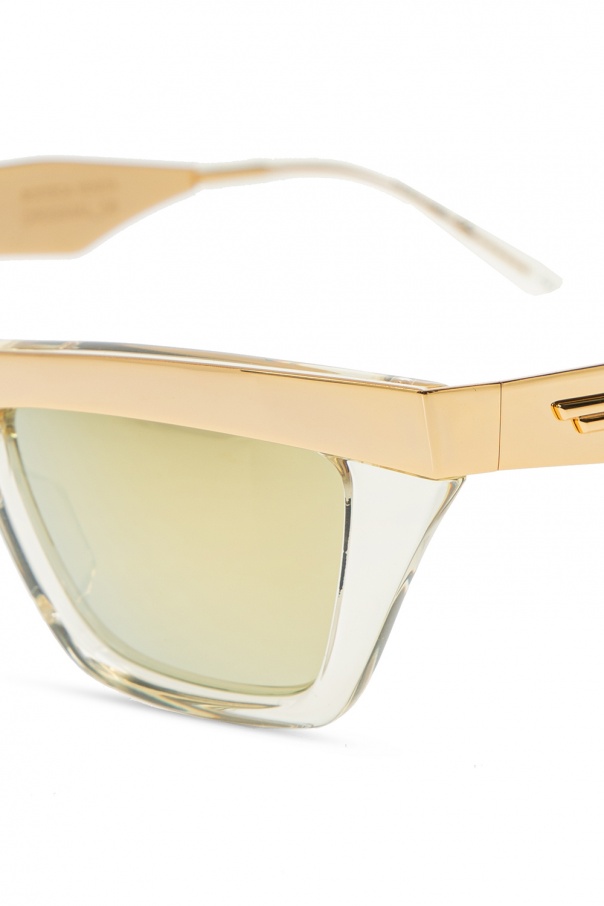 Gold-tone sunglasses from Bottega Veneta. Crafted in metal, this pair has logo-embossed temples and certificated grey mirror lenses with UVA/UVB protection.
