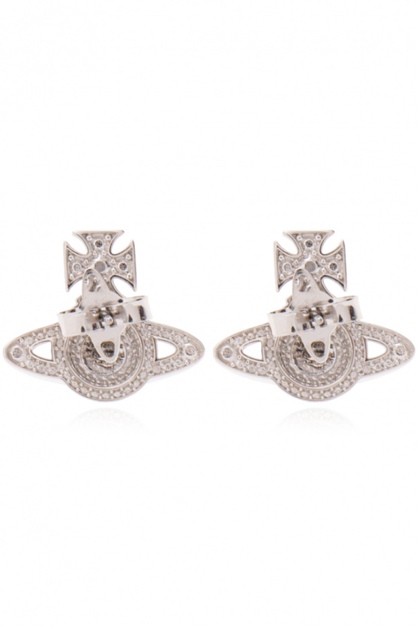 Silver-tone ‘Beryl’ brass earrings from Vivienne Westwood. Encrusted with crystals, they feature a white enamel trim and stud fasteners.