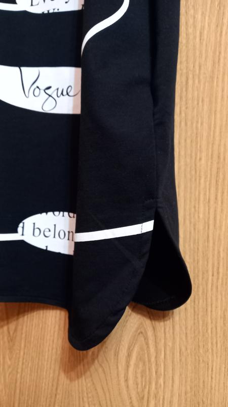💢Женская тёмно-синяя трикотажная туника из приятного плотного трикотажа на вискозной основе, с белым принтом по всей поверхности с надписями и синими камушками, округлый вырез горловины с переходом в планочку с застёжкой на три пуговки, рукав 3/4 с возможностью поднятия на хлястик, фасон удобный - слегка с расширением, по низу скругление, с внутренними карманами, хорошо тянется и держит форму.