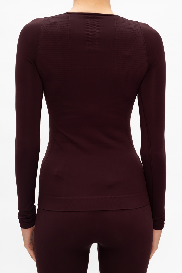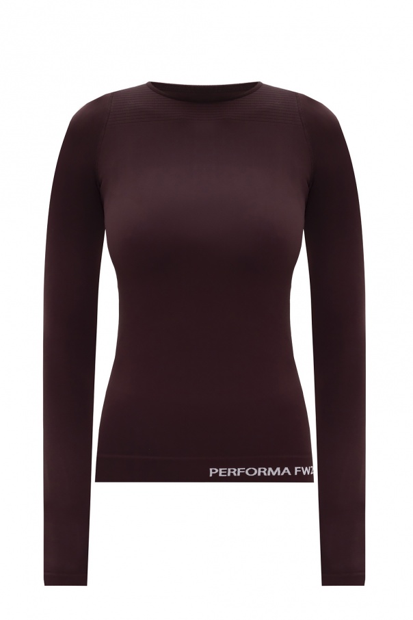 Maroon top from Rick Owens. This long sleeve design comes decorated with an embroidered pattern in white and the label\'s signature stitching details.