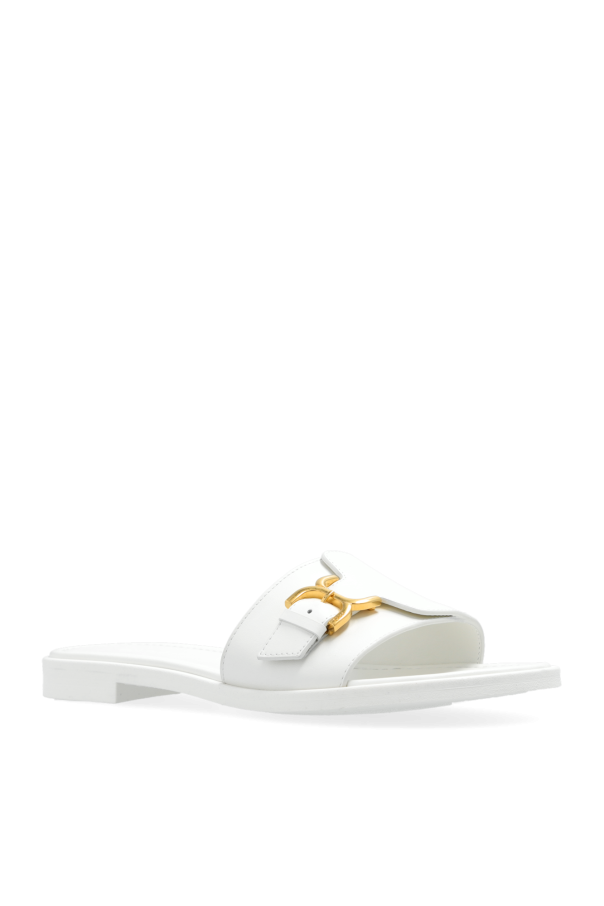 White ‘Marcie’ slides from Chloe. Resting on a white rubber sole. This pair is decorated with a logo-engraved buckle in gold-tone.