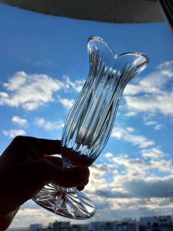 Небольшая ваза из хрусталя с интересным дизайном - как бутон тюльпана.