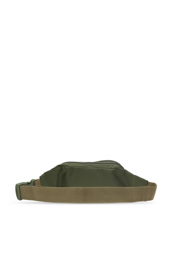 Dark green belt bag from ADIDAS Originals, the ‘Primegreen’ line. Fastened with zips, this item features a white logo print, adjustable buckle belt and two internal compartments. ‘Primegreen’ is a line that uses recycled materials in the production of high-quality products.