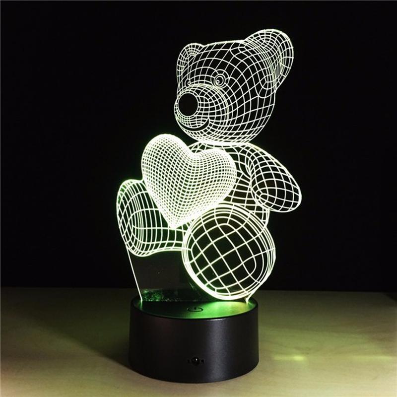 3d светильник мишка с сердцем, подарки на день рождения дочери, подарок девочке на др,...