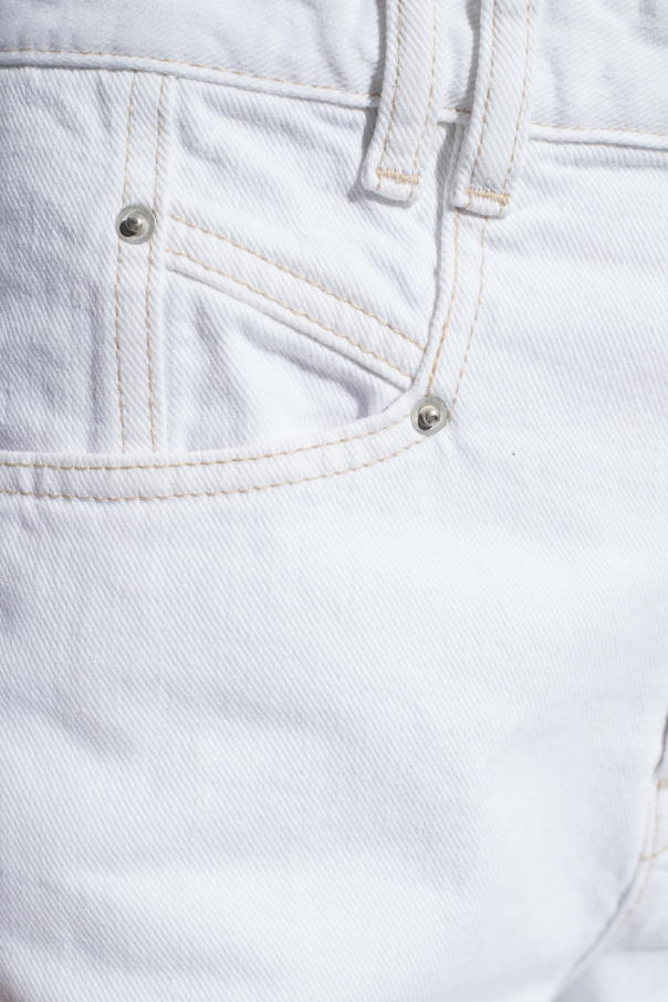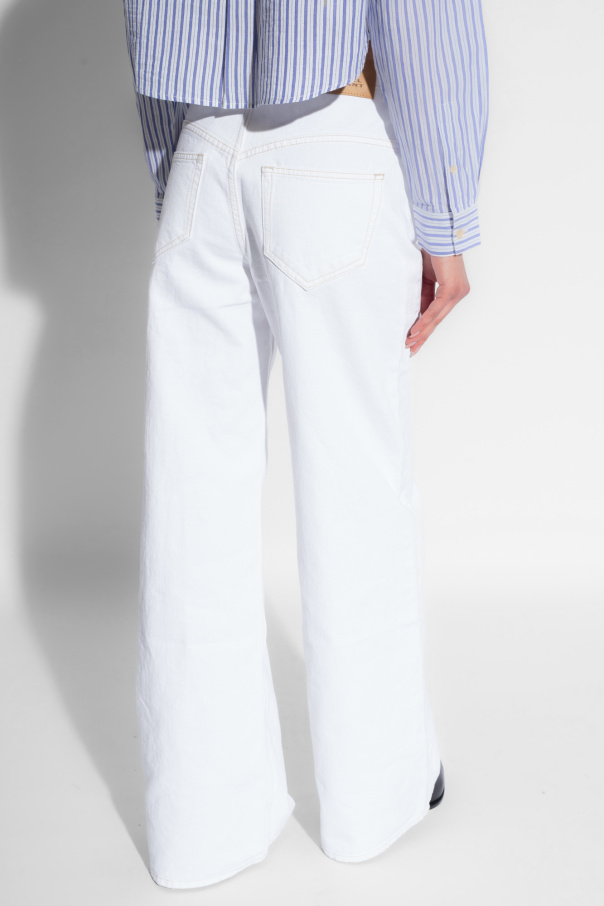 White ‘Lemony’ jeans from Isabel Marant. Falling with wide, straight legs, this pair features a zip fly with a button, four slip pockets and a logo patch on the back.