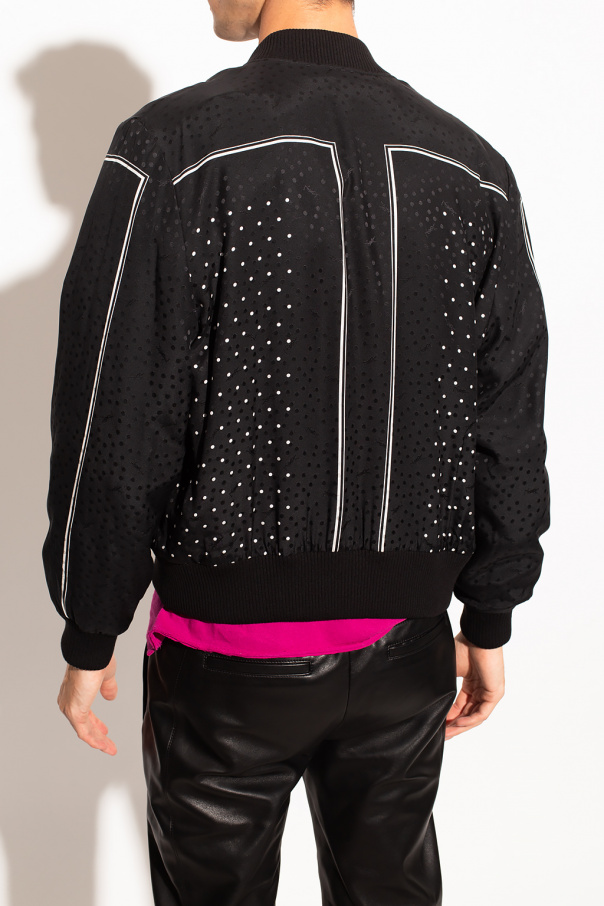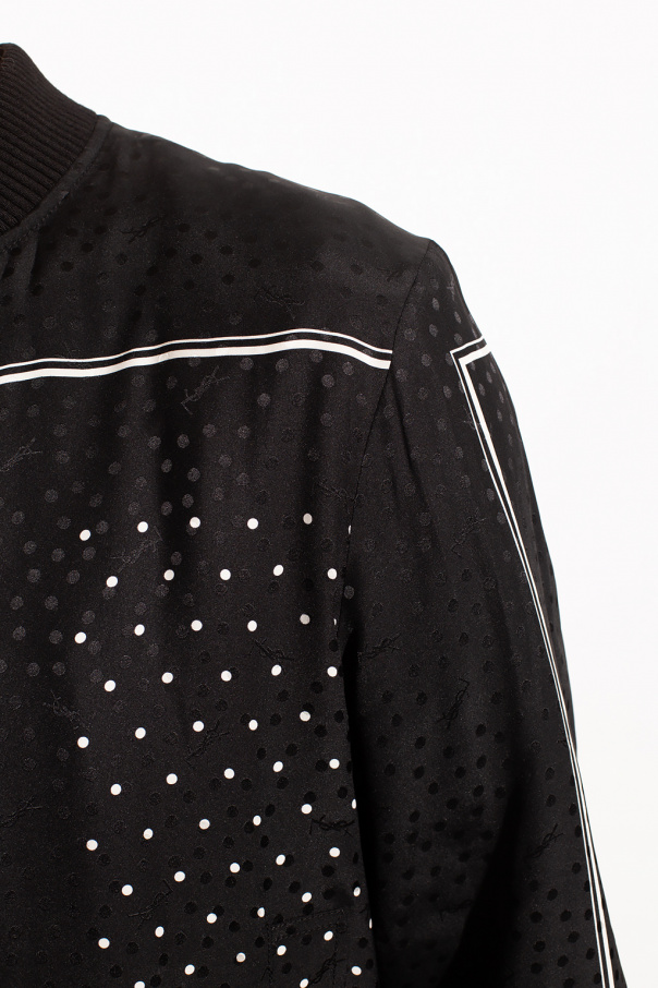 Black bomber jacket from Saint Laurent. Fastened with a zip, this garment features a white and black polka dot pattern, two slip pockets and ribbed trims at the collar, hem and cuffs.