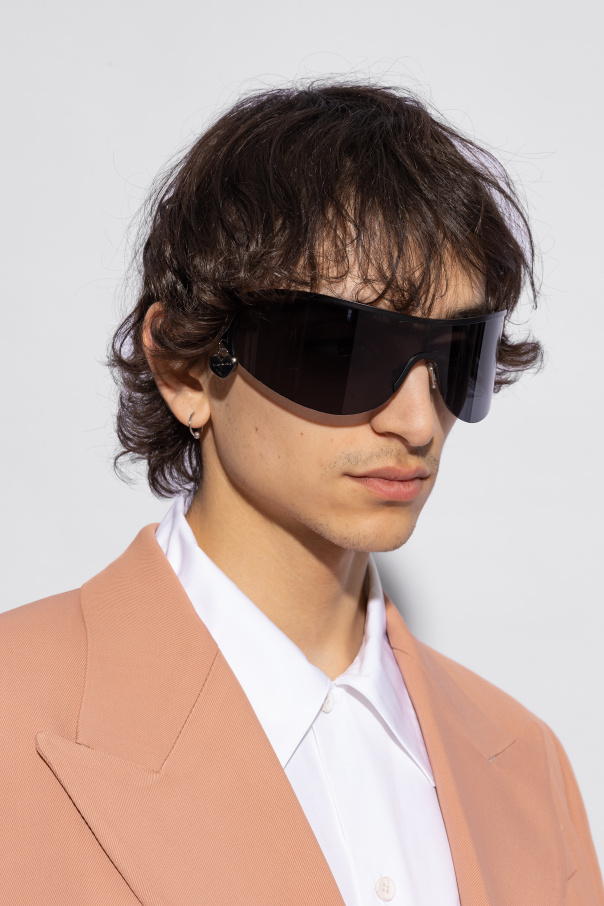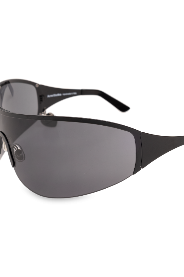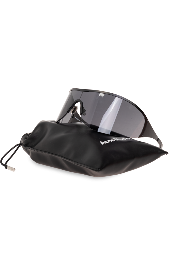 Introducing the epitome of modern sophistication, the Acne Studios Black Sunglasses. Crafted with precision, these sunglasses feature a sleek, one-piece lens design that stretches across the frame, presenting a seamless and futuristic aesthetic. The dominant black hue exudes elegance, while the minimalist frames and slender temples underscore the contemporary design. Made entirely of stainless steel, these sunglasses promise not only style but also durability and comfort. The lenses provide 100% protection against UVA/UVB rays, ensuring your eyes are shielded with utmost care. A distinct heart-shaped charm and the engraved Acne Studios logo on the temple add a signature touch, making these sunglasses instantly recognizable to the discerning eye. Accompanied by a high-quality soft case with a zip closure, these sunglasses are kept secure and scratch-free, making them a perfect companion for the modern gentleman dressed in a light suit or casual wear. Why Purchase This Product? Futuristic Design: Large, one-piece lens for a modern, mask-like style. Premium Materials: Constructed with 100% stainless steel for lasting durability. Signature Details: Heart-shaped charm and engraved logo for brand recognition. Complete Protection: Offers 100% UVA/UVB protection to safeguard your vision. Elegant Packaging: Includes a high-quality soft case for protection and style on the go.
