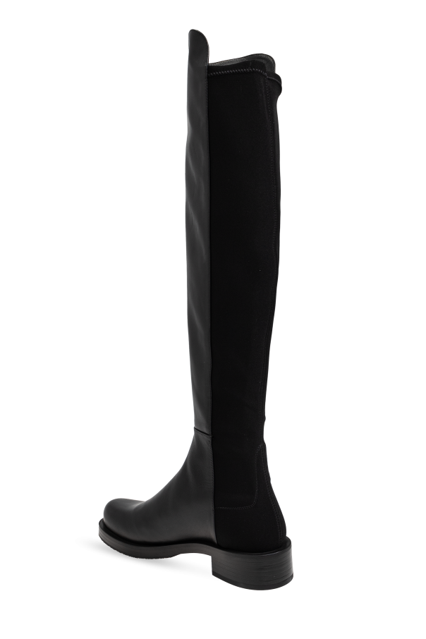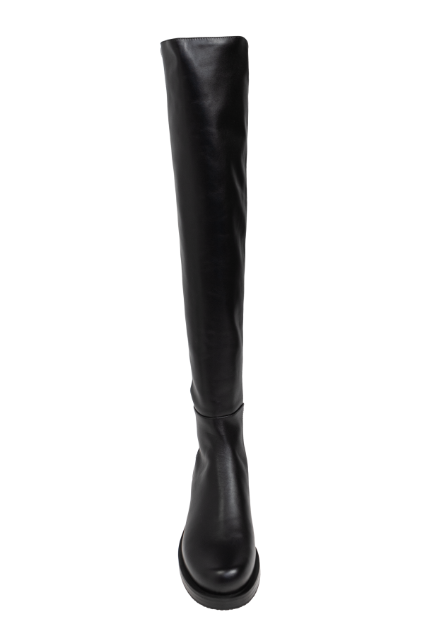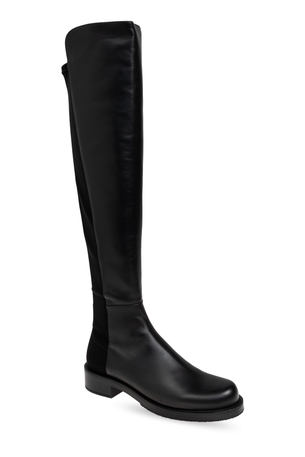 Introducing the 5050 Boots from the exclusive collection by the renowned designer Stuart Weitzman. These knee-length boots epitomize sophistication and practicality, making them an indispensable addition to any refined wardrobe. Crafted from premium leather, the front of the boots showcases a sleek and glossy finish, while the elasticized back panel ensures a custom fit, enhancing both comfort and elegance. The 5050 Boots are designed with a minimalist aesthetic, free from unnecessary embellishments, highlighting their understated luxury. Featuring a mid-heel for added comfort and a rounded toe for a timeless appeal, these boots are as functional as they are stylish. The absence of visible logos or inscriptions on the exterior maintains a discreet elegance, perfect for the discerning fashionista. In a versatile black shade, these boots seamlessly integrate into a variety of ensembles, making them a versatile choice for any occasion. The high-quality craftsmanship and meticulous attention to detail are evident in every stitch, a hallmark of Stuart Weitzman\'s exceptional artistry. Why Choose the 5050 Boots? Elegance: Knee-length design with a classic, minimalist look. Quality Materials: Premium leather exterior and interior for durability and comfort. Comfort: Elasticized back panel and mid-heel for a perfect fit and ease of wear. Versatility: Sleek black color complements any outfit. Craftsmanship: Exquisite attention to detail from a celebrated designer.