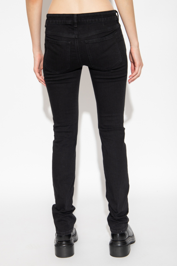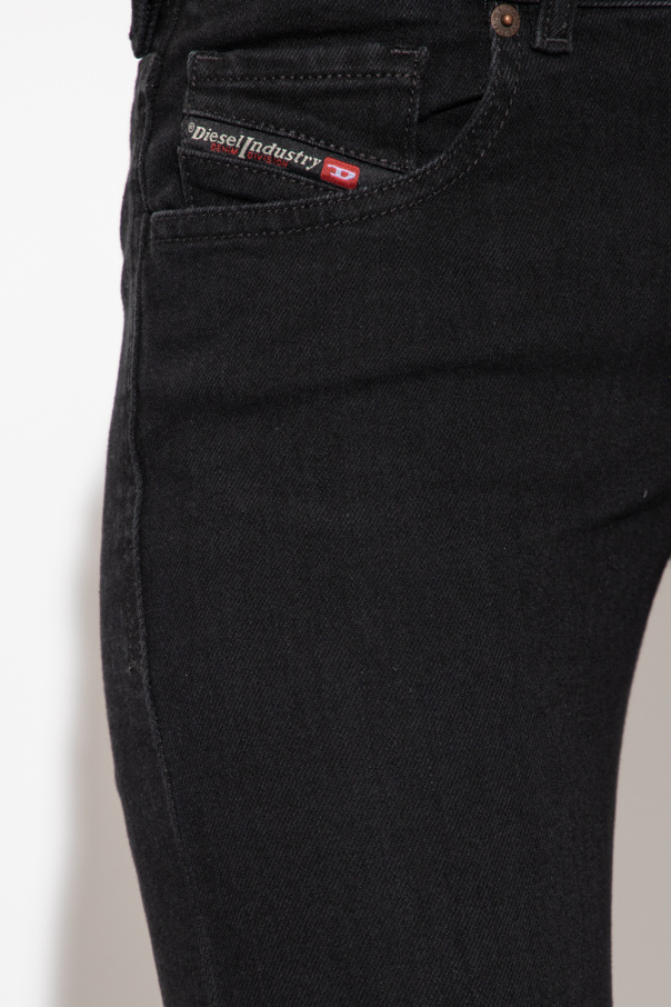 Black ‘2002’ slim-fit jeans from Diesel. Cut with a low-waisted silhouette, this pair features a zip fly with a button, classic five pockets, a patch on the front and logo embroidery at the back.