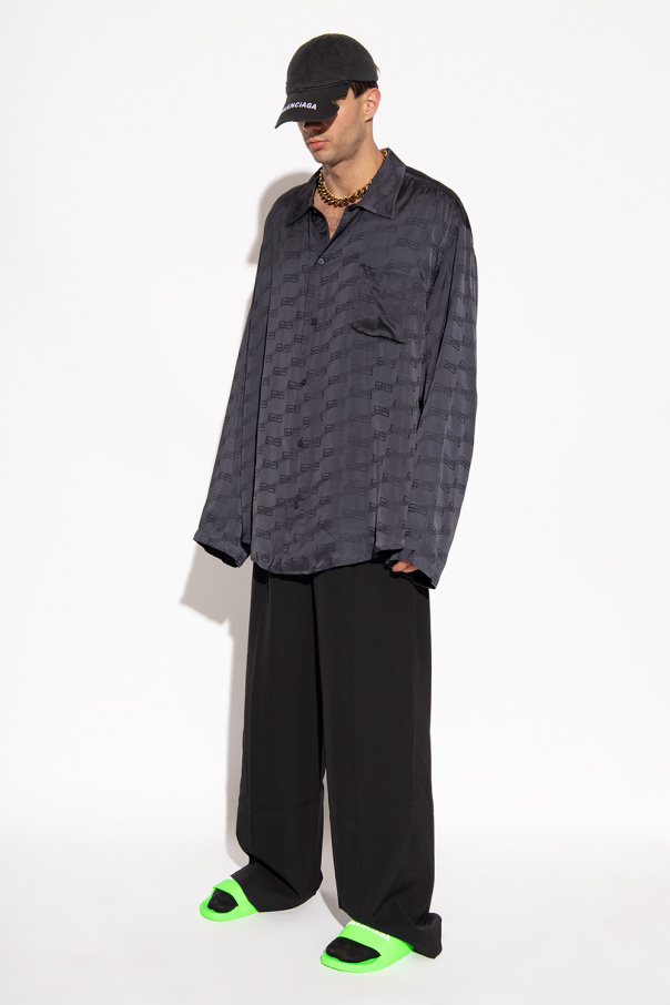 Neon green slides from Balenciaga. Sitting on a neon green rubber sole, this model showcases a white logo application on the front.