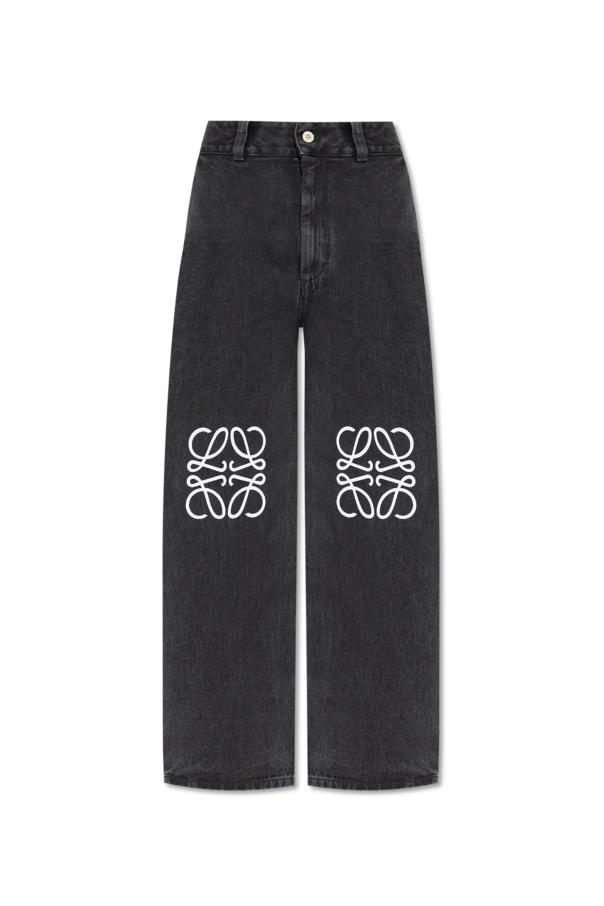 Introducing the Jeans with Straight Leg from the exclusive collection by Loewe. This Spanish brand, established in the 19th century, has been renowned for its impeccable leather accessories and has seamlessly blended tradition with modernity under the creative direction of Jonathan Anderson. Crafted from classic, robust denim, these jeans are presented in a timeless black hue. The straight leg cut and standard waist height offer both comfort and versatility, making them a staple piece in any wardrobe. Distinguished by a sophisticated white embroidered logo on the front knee area, these jeans feature symmetrical, curvilinear lines that exude elegance. The back showcases traditional, symmetrically placed pockets, enhancing the overall aesthetic. The jeans are fastened with a sturdy zipper and a metal button, augmented by solid stitching that underscores their superior craftsmanship. Styled with a white tee and an olive bomber jacket, these jeans demonstrate their adaptability with various wardrobe pieces. Why Choose This Product? Exquisite design by Loewe, blending traditional Spanish aesthetics with contemporary flair. High-quality denim material ensuring durability and timeless style. Unique embroidered logo adding a touch of elegance and distinction. Versatile straight leg cut suitable for various looks and occasions. Impeccable stitching and sturdy fastenings for long-lasting wear.