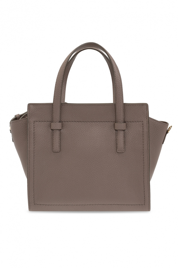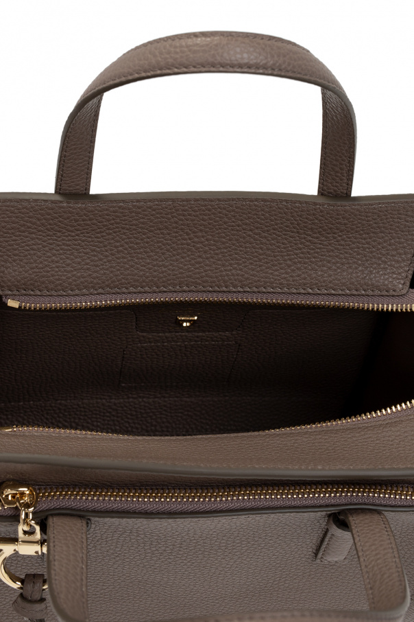 Brown ‘Amy’ shoulder bag from FERRAGAMO. Made of calf leather, this model features a zip fastening and is decorated with an embossed logo in gold-tone. It is complete with a zip pocket, two half-round handles, detachable and adjustable shoulder strap, gold-tone metal hardware and one internal compartment with one zip pocket.