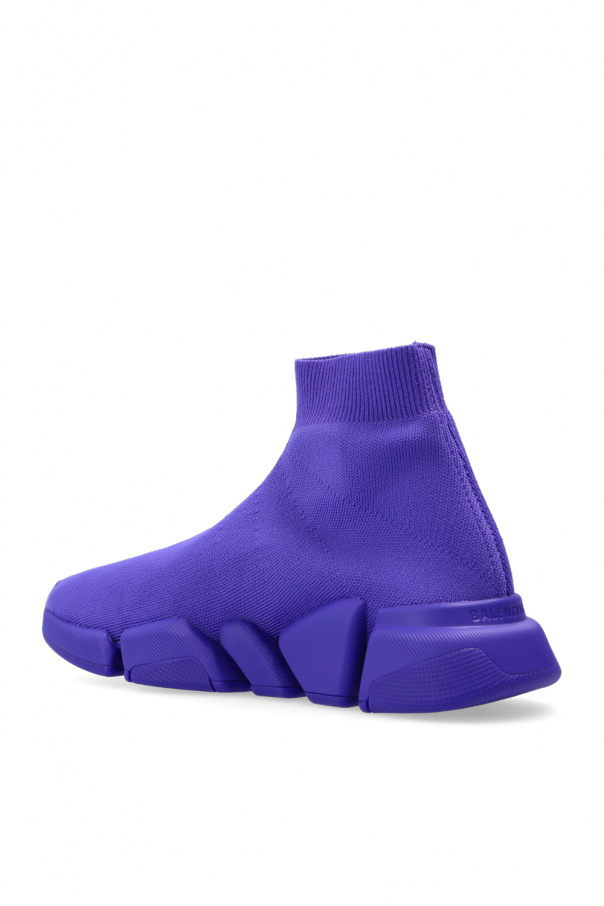 Purple ‘Speed 2.0 LT’ sock sneakers from Balenciaga. Made of technical knit, this high-top pair sits on a purple rubber sole and showcases the brand\'s logo printed in white.