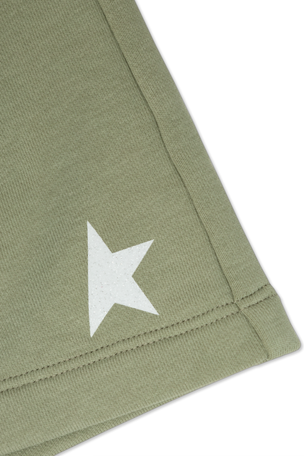 Introducing the exquisite Golden Goose Kids Sweat Shorts, a masterpiece of Italian craftsmanship designed for young fashion enthusiasts aged 4-14. These green shorts, crafted from a luxuriously soft blend of cotton and polyester, epitomize both comfort and style. The simple cut with an elastic waistband ensures a perfect fit for everyday wear. Embellished with a signature white star on one leg, these shorts carry the iconic hallmark of the Golden Goose brand, renowned for its unique fusion of traditional artistry and modern design. A singular back pocket adds a touch of practicality to this elegant piece. Proudly embodying the brand\'s rebellious yet refined spirit, these shorts are a testament to meticulous attention to detail, featuring even seams and impeccable finishes. Why Choose This Product? Luxurious comfort with a soft cotton-polyester blend. Unique design featuring the iconic white star. Elastic waistband for a perfect fit. Impeccable craftsmanship for exceptional durability.