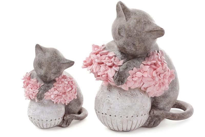Декоративна статуетка Котик на вазі з рожевими квітами 18см